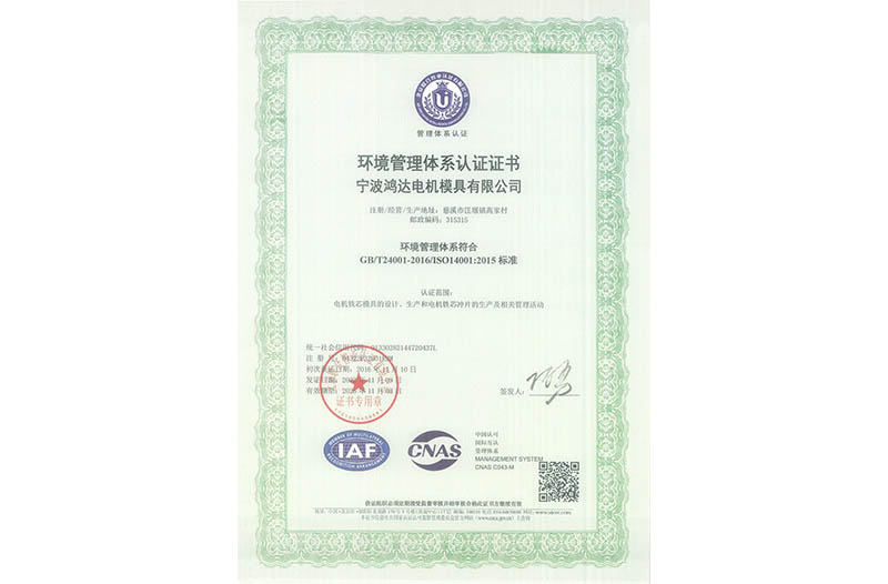 ISO14001环境管理体系认证证书