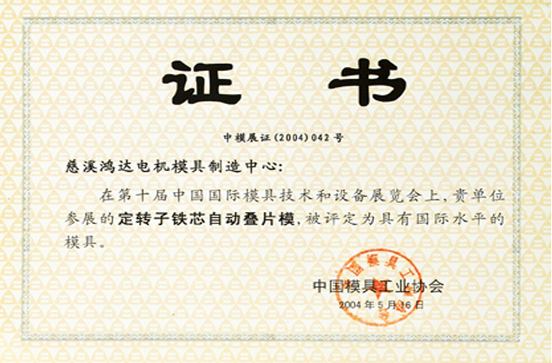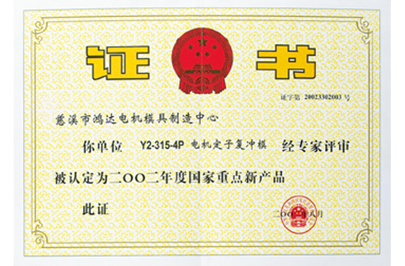 La matriz de punzonado múltiple del estator electrónico fue reconocida como un nuevo producto clave del Estado en 2002.