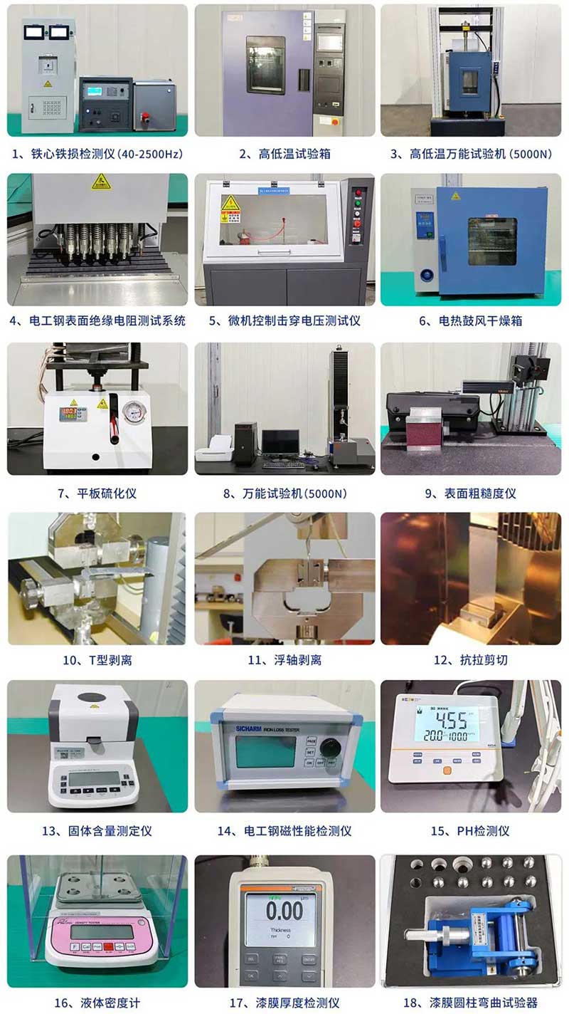 3.B状态自粘结电工钢检测:附着性、漆膜硬度、涂层厚度、硅钢片间绝缘检测、电工钢耐高压检测。