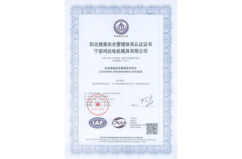 ISO45001职业健康安全管理体系认证证书