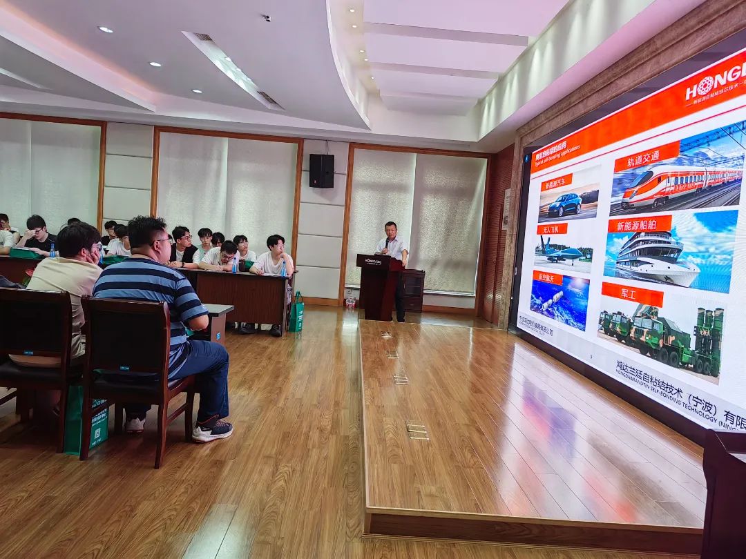 宁波易游平台官网技术总监倪峻锋先生在会议室详细讲解自粘结技术,主要以自粘结技术发展、应用、工作原理、自粘结工艺类型、技术优势、检测方法以及研发成果等方面,并现场与同济大学师生进行交流,详细解答技术方面的问题。时间短暂,来日方长,希望双方保持对技术的探讨、研究、推动发展。